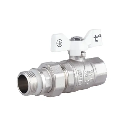Кран кульовий Standart 1/2"ВЗ прямий, з американкою, латун,. нікельов., конус, PN40, метелик SD220NW15PN40 Thermo Alliance