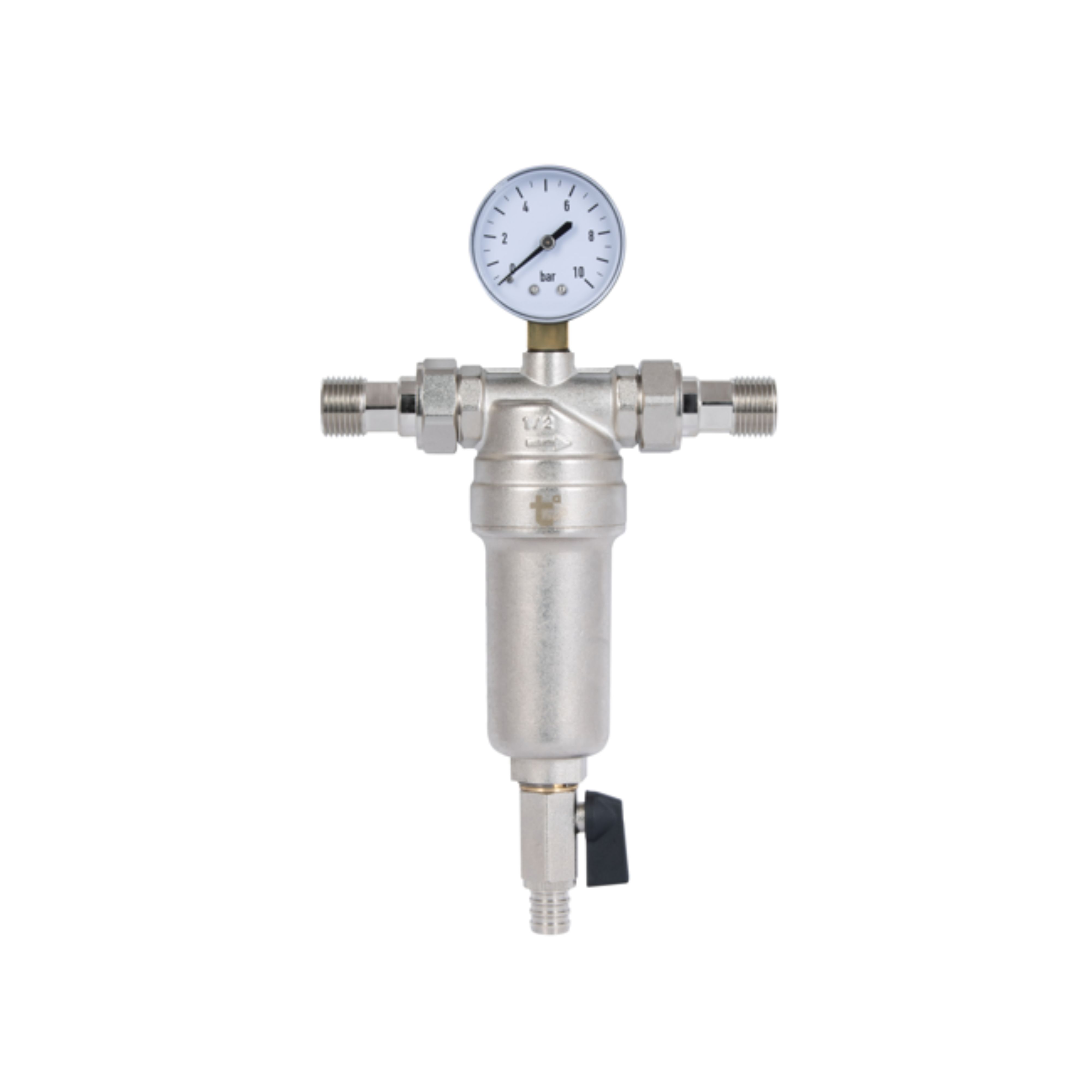 Самопромивний фільтр тонкого очищення Thermo Alliance серії Standart (арт. TAS128W20) із пластиковою колбою ефективно затримує дрібні домішки, захищаючи систему водопостачання та побутові прилади від забруднень. Функція самопромивки полегшує обслуговування, продовжуючи термін служби елемента, що фільтрує, а міцна пластикова колба забезпечує надійність і зручність контролю стану фільтра.