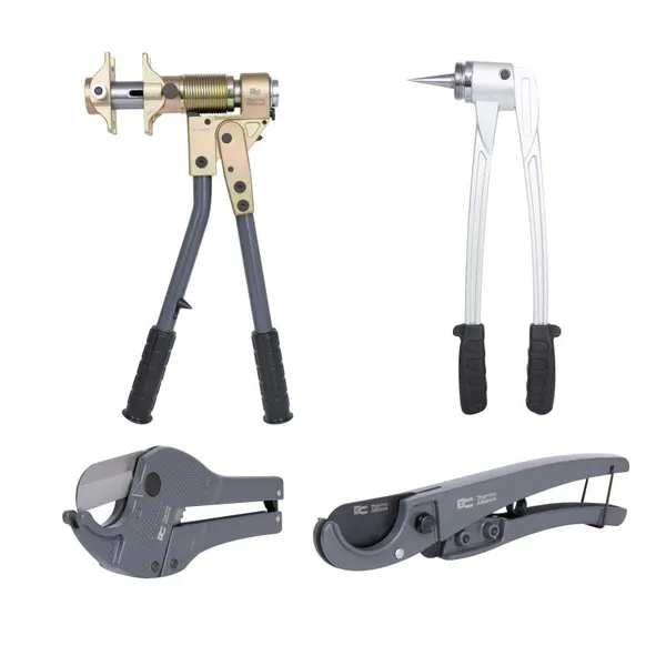 Інструмент для аксіального фітингу Ø 16–32, ручний Thermo?Alliance STD?301 служить для з’єднання аксіальних фітингів із полімерними типу Pex?A, Pex?B, Pex?C, PERT, а також металополімерними трубами при заміні розширювальних насадок під потрібний діаметр. Перевага - надійний храповий механізм, що забезпечує точне й герметичне обтиснення при кожному натисканні. Комплектація: інструмент із набором змінних губок, розширювач із насадками, великий і малий труборізи. Універсальний, сумісний із фітингами ICMA, Rehau, General Fittings, Golan, Heat?Pex, Fado тощо.