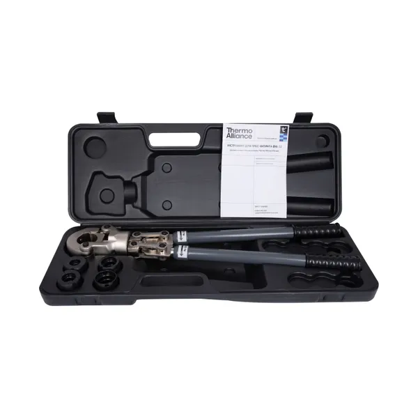 Інструмент для прес-фітинга Thermo Alliance STD-403 — це ручний професійний пристрій з поворотним механізмом, призначений для з'єднання труб діаметром від 16 до 32 мм. Завдяки обертовій головці інструмент забезпечує зручність роботи навіть у важкодоступних місцях. Поставляється у міцному пластиковому кейсі разом із змінними насадками та інструкцією.