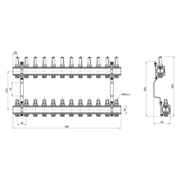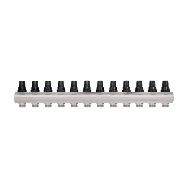 Колектор з витратомірами Thermo Alliance Forte 1" на 12 виходів відповідає за рівномірний розподіл тепла в петлях водяного підлогового опалення. У складі виробу: дві латунні колекторні балки, витратоміри (на вхідній лінії), термоклапани з ручками керування (на зворотному колекторі), кронштейни для кріплення в шафі або на стіні. На термостатичні клапани можна встановити сервоприводи 30х1,5 (не входять у комплект). Правила експлуатації встановлюють максимум температури теплоносія на вході — 95 °C.