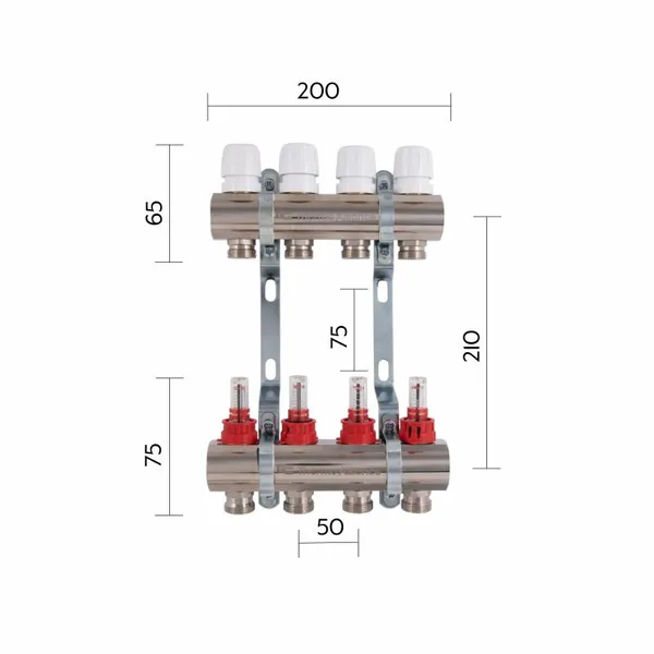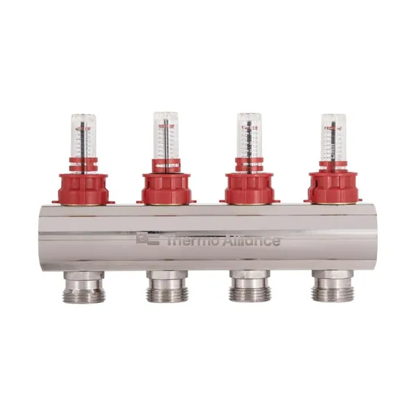 Колектор Standart з нерж. сталі, з термостатичн. клапанами і витратомірами 1" х 4 (вих) SD0044 Thermo Alliance