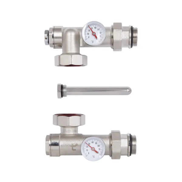 Конектор для колектора Thermo Alliance Standart 1" призначений для підключення циркуляційного насоса до колекторної групи. Виріб виконаний із латуні з нікельованим покриттям. Складається з двох магістральних балок із зануреними термометрами (шкала вимірювання 0–120 °C). Постачається разом із гільзою для щупа. Застосовується переважно при облаштуванні системи опалення «тепла підлога».