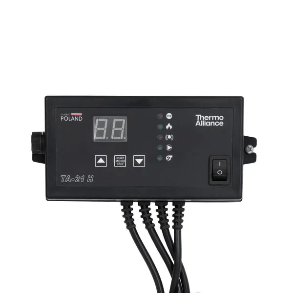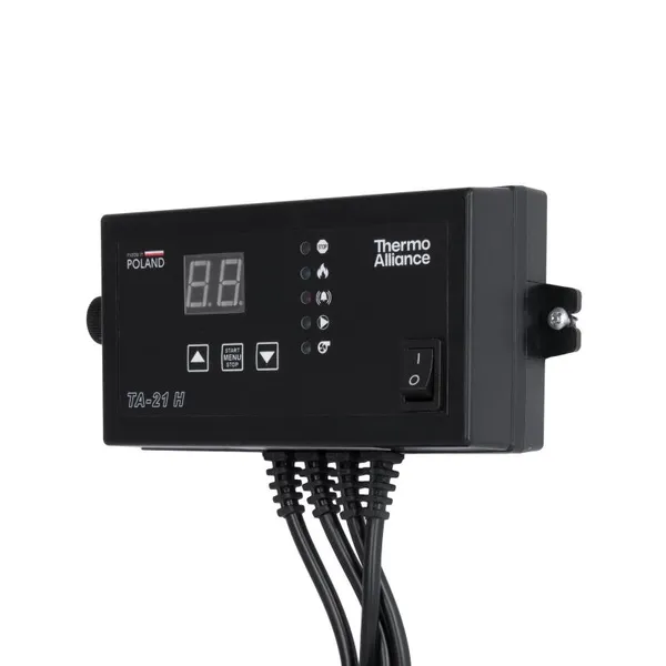 Контролер для котла TA21 Н Thermo Alliance призначений для автоматичного керування вентилятором і циркуляційним насосом системи опалення, забезпечуючи ефективну та безпечну роботу твердопаливного котла. Пристрій підтримує задану температуру води в системі, регулюючи оберти вентилятора, та вмикає насос центрального опалення при досягненні необхідної температури. Простий в налаштуванні та зручний у використанні, контролер допомагає знизити витрати палива та продовжити термін служби обладнання.