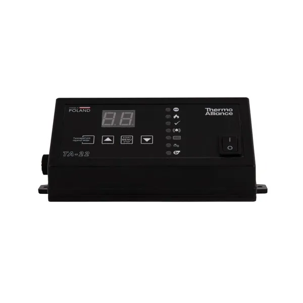 Контролер для котла TA22 Thermo Alliance призначений для комплексного керування вентилятором, циркуляційним насосом системи опалення та насосом гарячого водопостачання. Забезпечує ефективну роботу твердопаливного котла, підтримуючи стабільну температуру теплоносія та гарячої води. Оснащений зручним дисплеєм і зрозумілим інтерфейсом, TA22 дозволяє оптимізувати споживання палива й електроенергії, підвищуючи комфорт і безпеку експлуатації.
