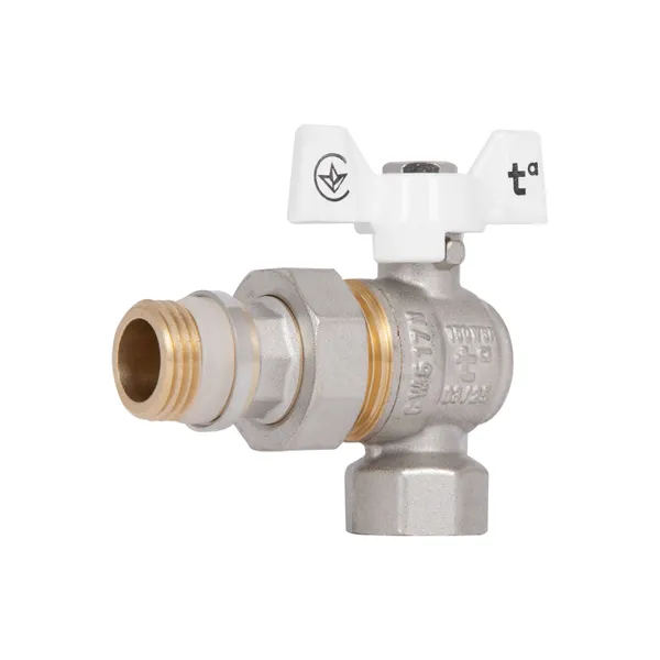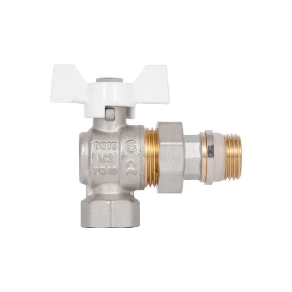 Кран кульовий Forte 1/2"ВЗ кутовий, з американкою, нікел., антипротікання, метелик SF223W15 Thermo Alliance