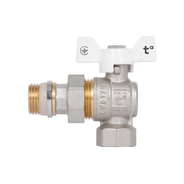 Кран кульовий Forte 3/4"ВЗ кутовий, з американкою, нікел., антипротікання, метелик SF223W20 Thermo Alliance