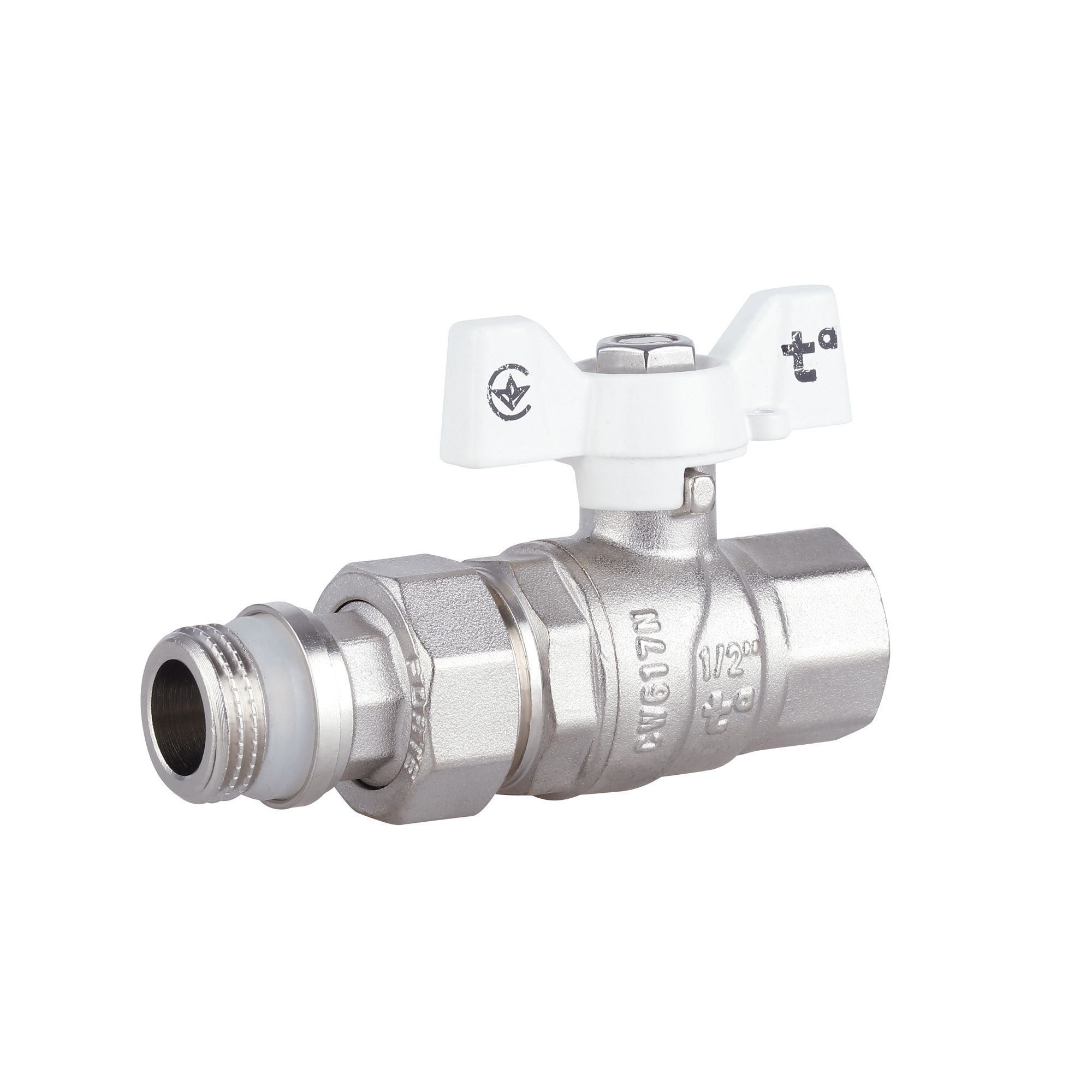 Кран кульовий Standart 1/2"ВЗ прямий, з американкою, латун,. нікельов., конус, PN40, метелик SD220NW15PN40 Thermo Alliance