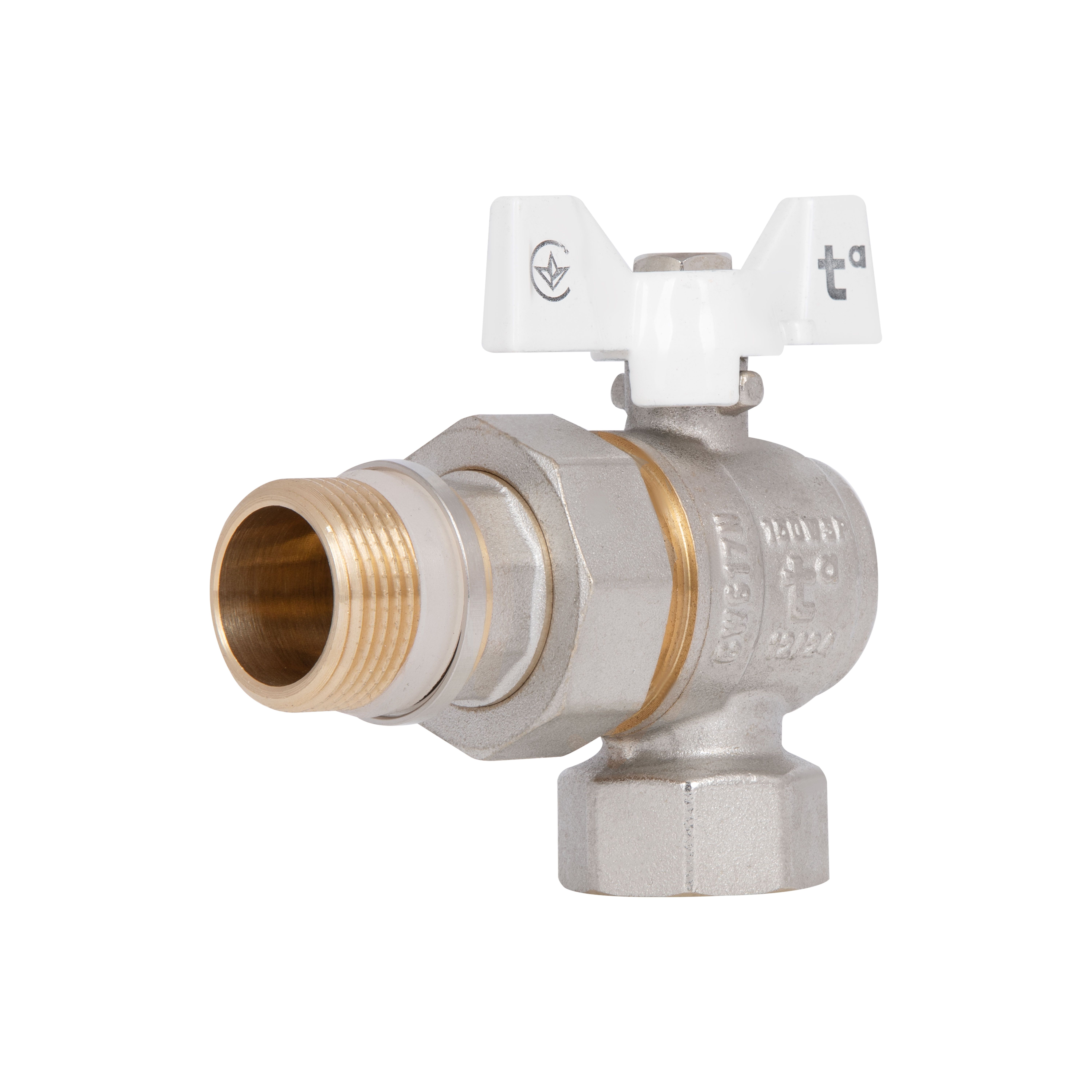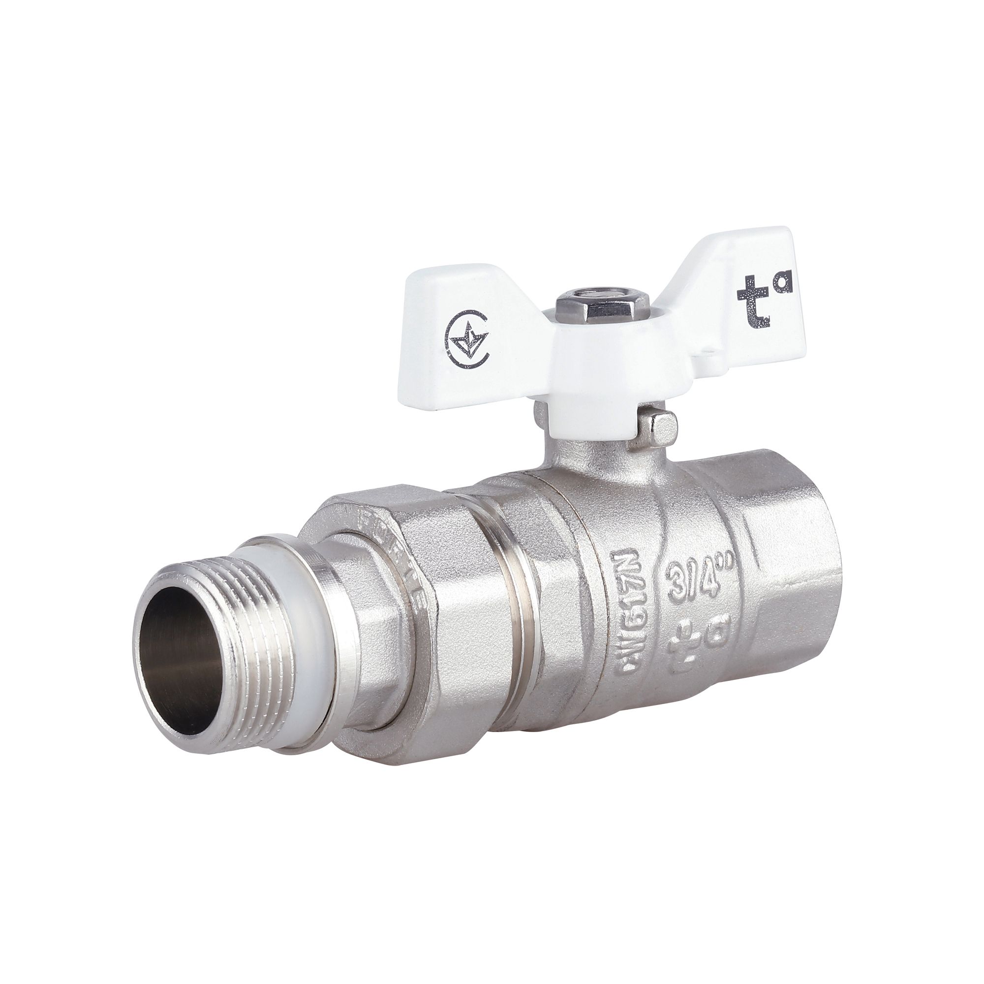 Кран кульовий Standart 3/4"ВЗ прямий, з американкою, латун., нікельов., конус, PN40, метелик SD220NW20PN40 Thermo Alliance