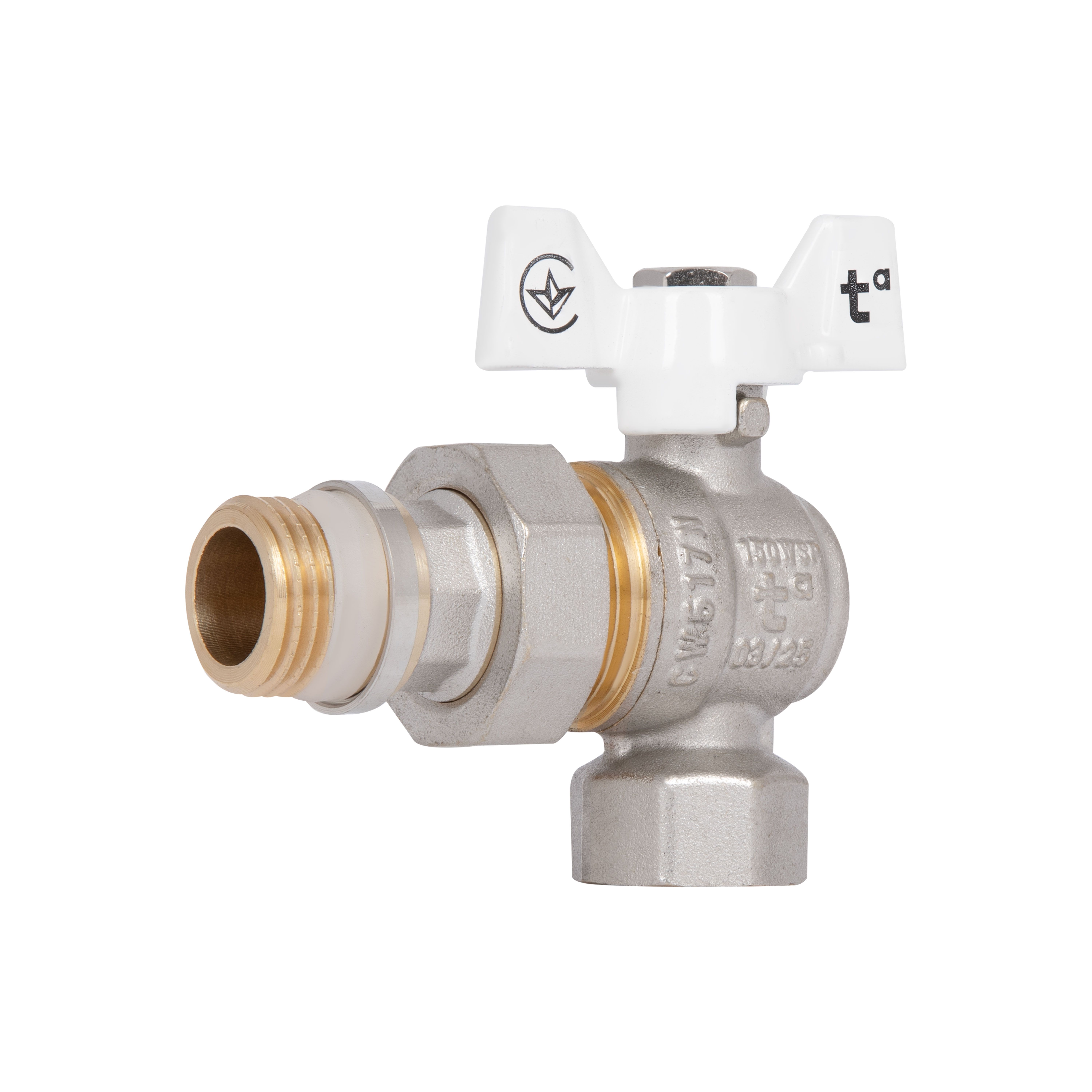 Кран кульовий Base 3/4"ВЗ прямий, з американкою, латун., нікельов., PN40, метелик SD221W20 Thermo Alliance