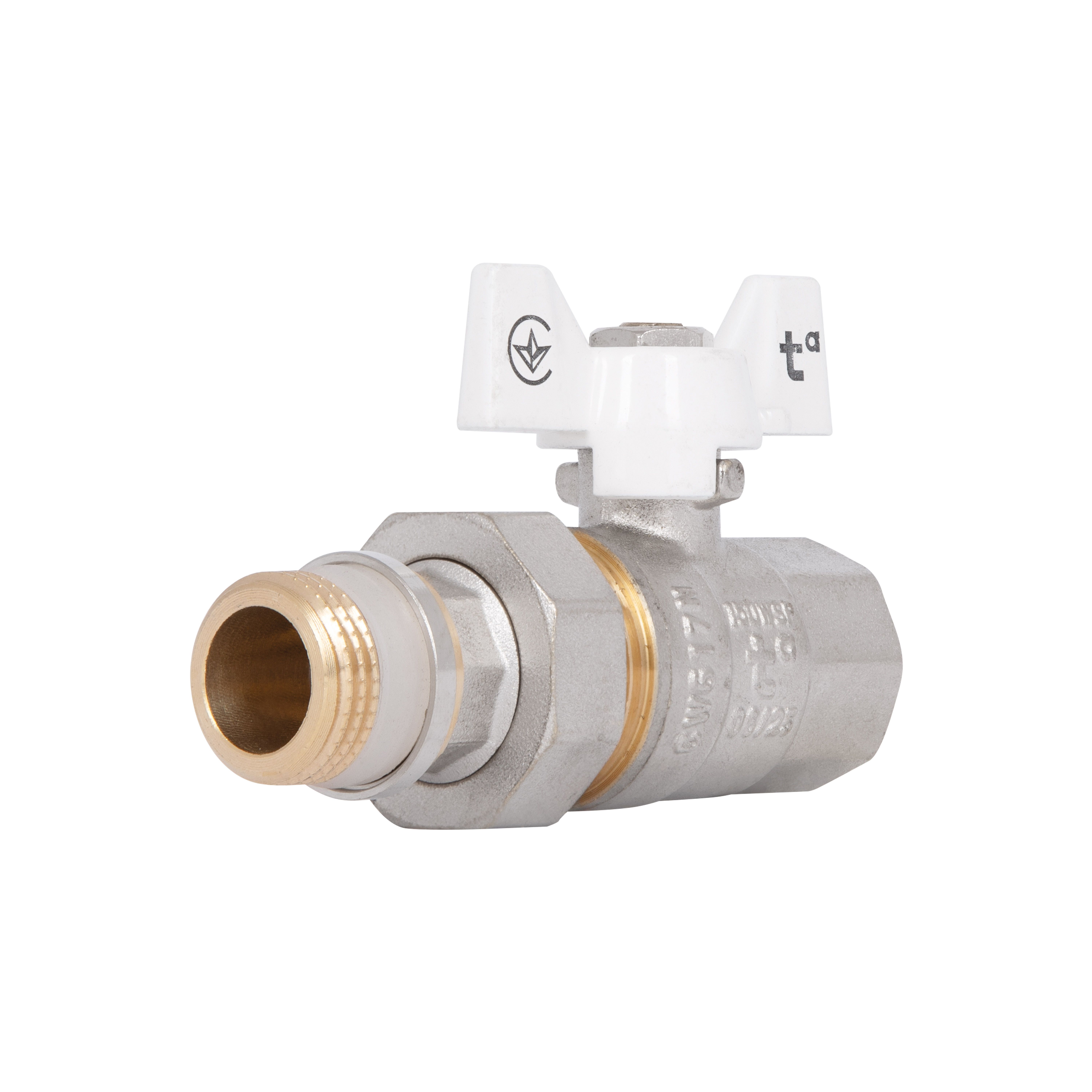 Кран кульовий Standart 3/4"ВЗ прямий, з американкою, латун., нікельов., гум., PN40, метелик SD220W20 Thermo Alliance