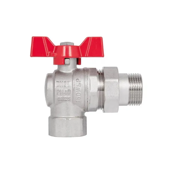Кран кульовий 1"ВЗ кутовий, з американкою, нікел., метелик SF221W25 SD Forte