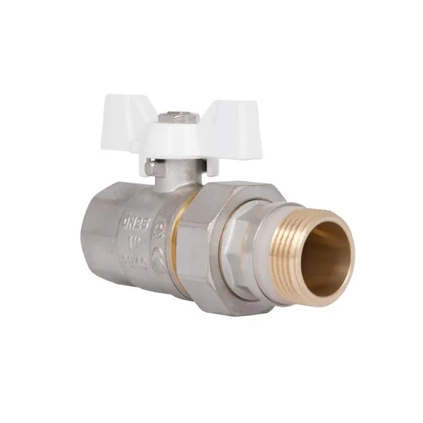 Кран кульовий Base 1"ВЗ прямий, з американкою, латун., нікельов., PN40, метелик SD221W25 Thermo Alliance