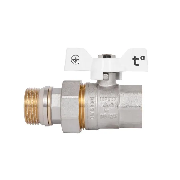 Кран кульовий Standart 3/4"ВЗ прямий, з американкою, латун., нікельов., конус, PN40, метелик SD220NW20PN40 Thermo Alliance