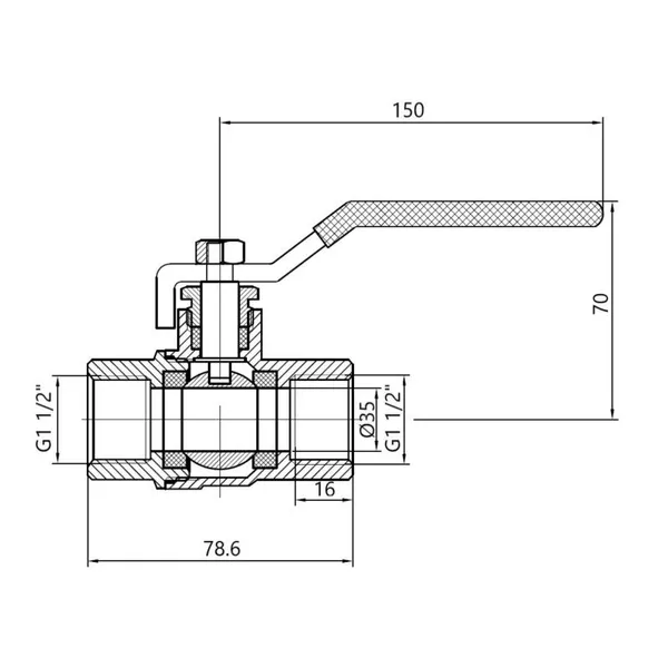 Кран кульовий для газу 1 1/2"ВВ прямий, латун. нікел., PN40, важіль SD600NG40PN40 SD Plus
