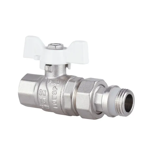 Кран кульовий Base 3/4"ВЗ прямий, з американкою, латун., нікельов., PN40, метелик SD221W20 Thermo Alliance