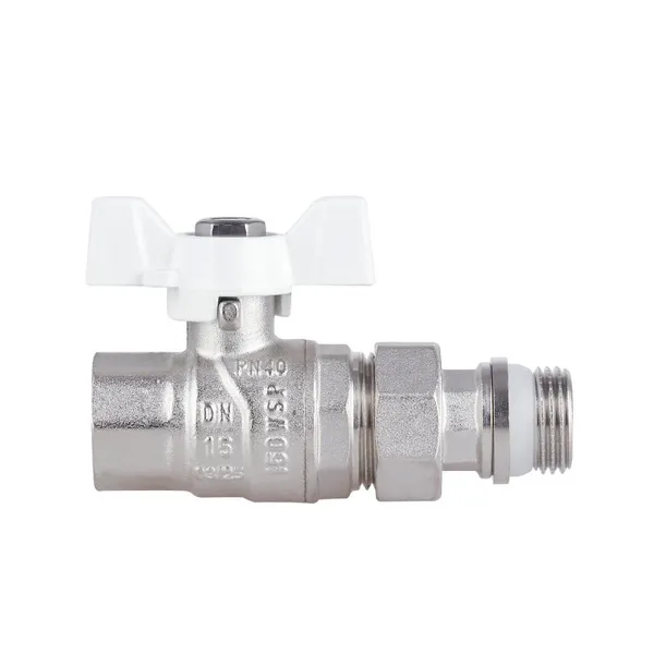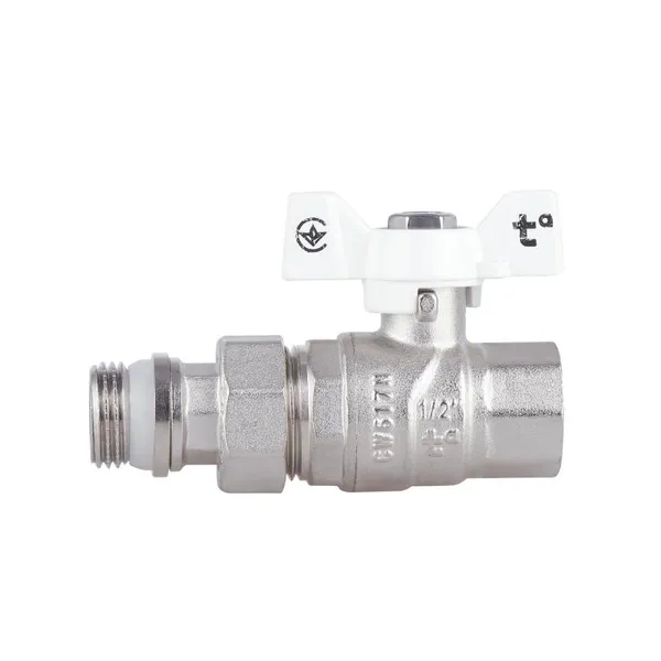 Кран кульовий Standart 1/2"ВЗ прямий, з американкою, латун,. нікельов., конус, PN40, метелик SD220NW15PN40 Thermo Alliance