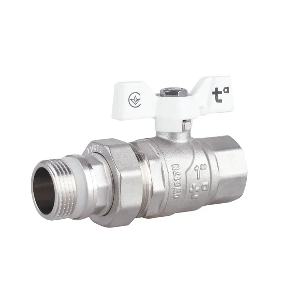 Кран кульовий Standart 3/4"ВЗ прямий, з американкою, латун., нікельов., конус, PN40, метелик SD220NW20PN40 Thermo Alliance