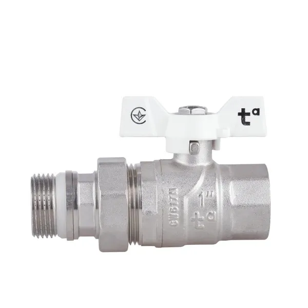 Кран кульовий Standart 1"ВЗ прямий, з американкою, латун., нікельов., конус, PN40, метелик SD220NW25PN40 Thermo Alliance