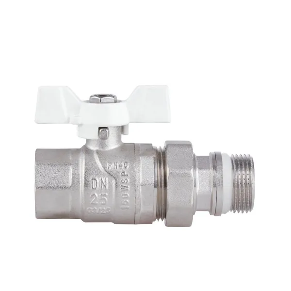 Кран кульовий Base 1"ВЗ прямий, з американкою, латун., нікельов., PN40, метелик SD221W25 Thermo Alliance