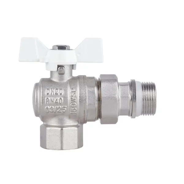 Кран кульовий Forte 3/4"ВЗ кутовий, з американкою, нікел., антипротікання, метелик SF223W20 Thermo Alliance