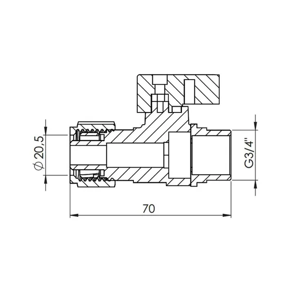 Кран кульовий обтискний Thermo Alliance Forte Ø20х3/4" ЗР виготовляється з латуні з нікельованим покриттям. Використовується для монтажу полімерних і металополімерних труб діаметром 20 мм і товщиною стінки 2 мм.