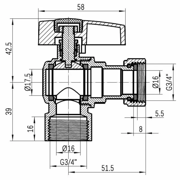 Кран кульовий Thermo Alliance Standart TAS223W20 призначений для надійного перекриття потоку в системах опалення та водопостачання. Виконаний у кутовому варіанті з внутрішнім різьбленням 3/4" та накидною гайкою, що спрощує монтаж в обмеженому просторі. Витримує тиск до PN40, забезпечуючи герметичність і довговічність з’єднання.