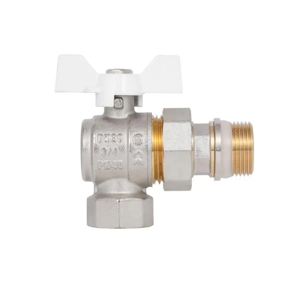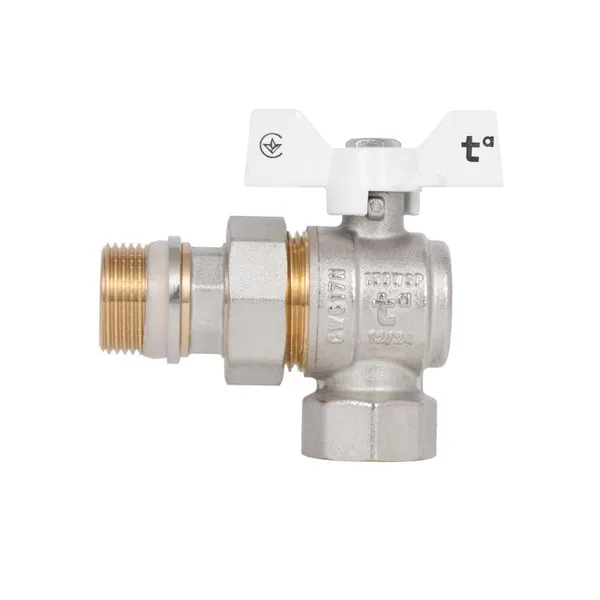 Кран кульовий Standart 3/4"ВЗ кутовий, з американкою, латун., нікельов., конус, PN40, антипротікання, метелик SD901NW20PN40 Thermo Alliance