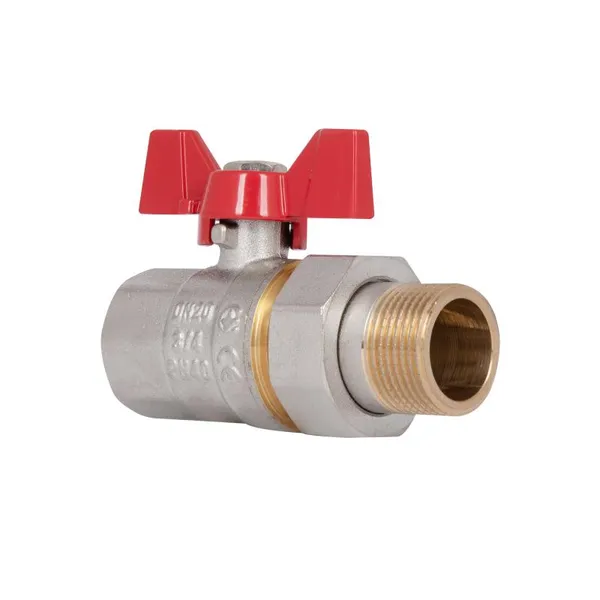 Кран кульовий Standart 1/2"ВЗ прямий, з американкою, латун,. нікельов., конус, PN40, метелик SD220NW15PN40 Thermo Alliance
