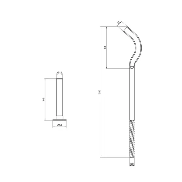 Діметр кронштейна – 8 мм, довжина – 250 мм. Комплектація: кріплення - 2 шт.