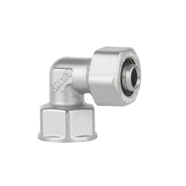 Кут латунний Standart 16х1/2"В нікельований для металопласт. труб SD156W1615 Thermo Alliance