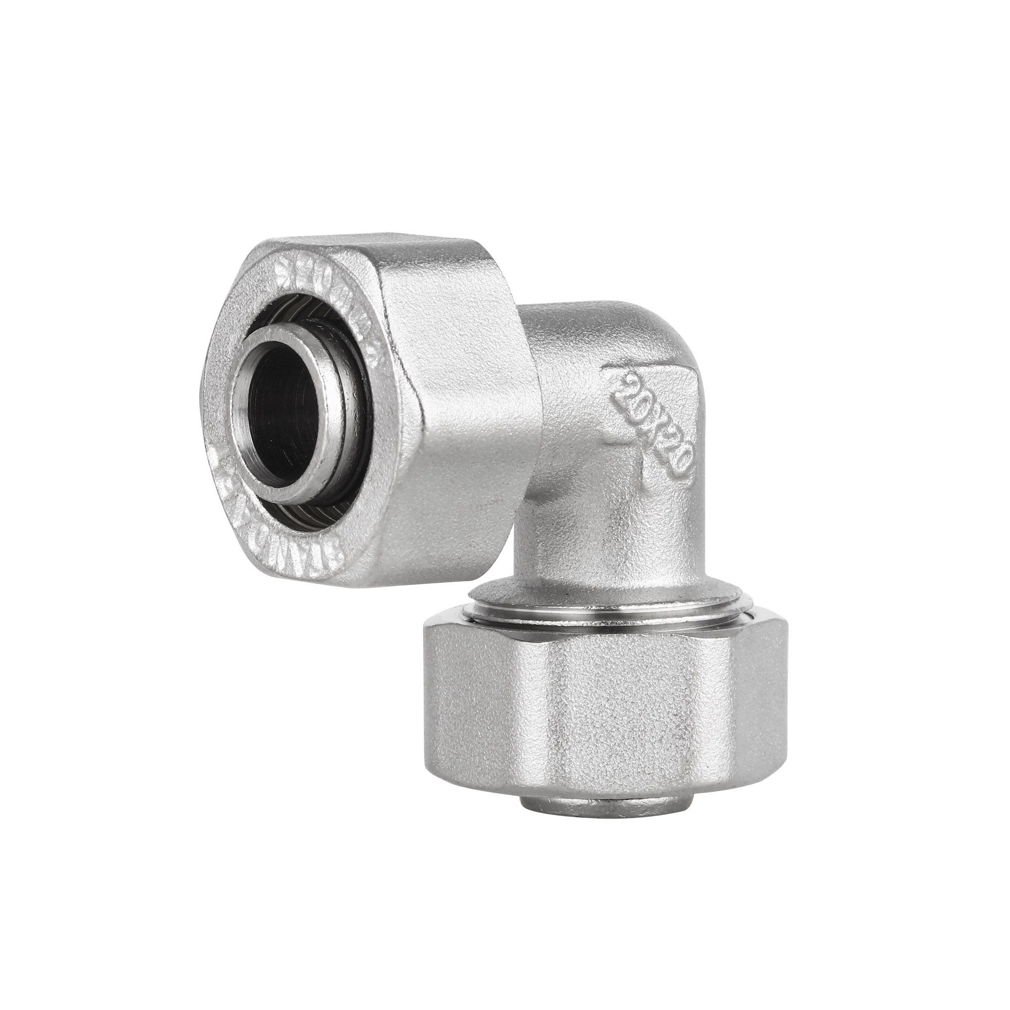 Кут латунний Standart 20х20 нікельований для металопласт. труб SD155W2020 Thermo Alliance