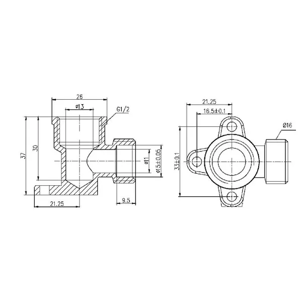 Кут з настінним кріпленням розбірний Forte 16х1/2"В нікельований SF179W1615 Thermo Alliance