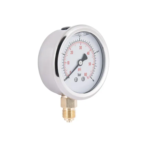 Гліцериновий манометр Thermo Alliance серії Forte (арт. TAF170G4B) з нижнім підключенням призначений для точного контролю тиску до 4 бар у системах опалення та водопостачання. Наповнення гліцерином знижує коливання стрілки, забезпечуючи стабільні показання та продовжуючи термін служби приладу. Міцний корпус захищає механізм від зовнішніх впливів, а нижнє підключення полегшує встановлення.
