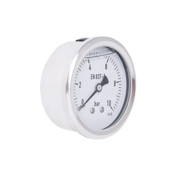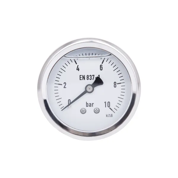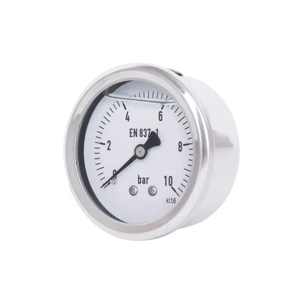 Thermo Alliance Forte TAF171G10B — гліцериновий манометр з діаметром корпусу 63 мм і латунним з’єднанням 1/4" З із заднім підключенням. Призначений для вимірювання тиску до 10 бар у водяних, повітряних та інших технічних системах. Наповнення гліцерином знижує вібрацію стрілки та подовжує термін служби пристрою.