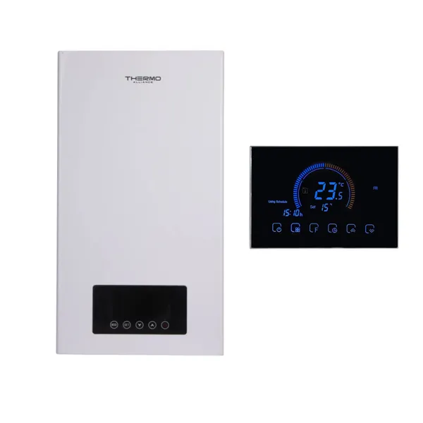 Набір 2 в 1 від Thermo Alliance є комплексним рішенням для ефективного та зручного управління системою опалення. Електричний котел потужністю 10 кВт забезпечує надійне та стабільне обігрів приміщень, підтримуючи комфортну температуру в холодну пору року. Дротовий термостат з функцією Wi-Fi дозволяє легко налаштовувати параметри роботи котла та дистанційно керувати температурними режимами через мобільний додаток. Це рішення ідеально підходить для будинків та квартир середнього розміру, забезпечуючи високу енергоефективність та комфортне керування системою опалення.