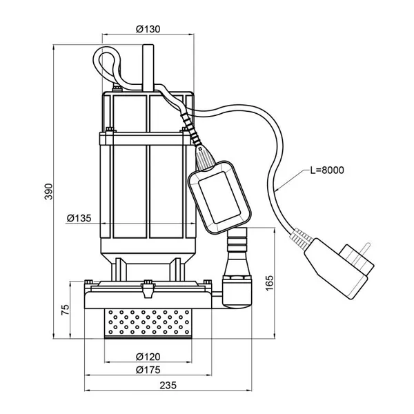 Насос дренажний QXD3-30-1,1, 1,1 кВт (H=30,5; G=75), чавунний, з поплавком TAQXD33011 Thermo Alliance