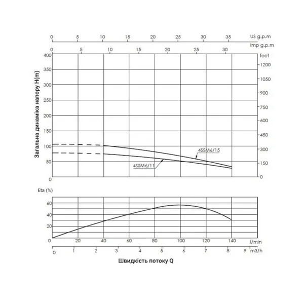 • Максимальний напір, м
