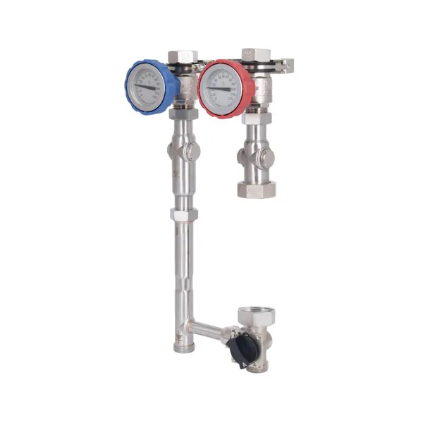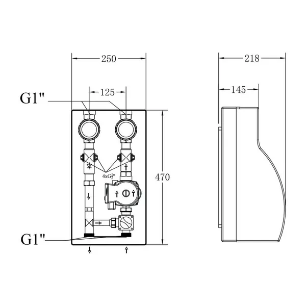 Насосна група Thermo Alliance Forte Quick System з триходовим клапаном без сервомотора 1" (без насоса) праве підключення TAF-QSPGR3 — це змішувальний модуль для систем опалення, який забезпечує стабільну температуру подачі теплоносія в контур. Корпус виготовлений із нержавіючої сталі SUS304, що гарантує високу міцність і довговічність. Управління здійснюється вручну, з можливістю подальшого встановлення сервомотора. Конструкція має місце під насос 180 мм, міжосьову відстань 125 мм, діапазон регулювання температури 0–100°C, максимальну робочу температуру 95°C і тиск до 6 бар. Ізоляція класу Erp сприяє збереженню енергії та підвищенню ефективності роботи системи.