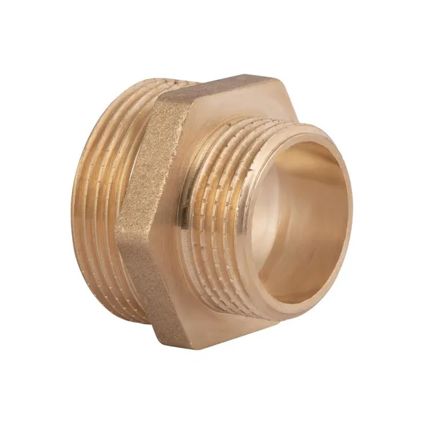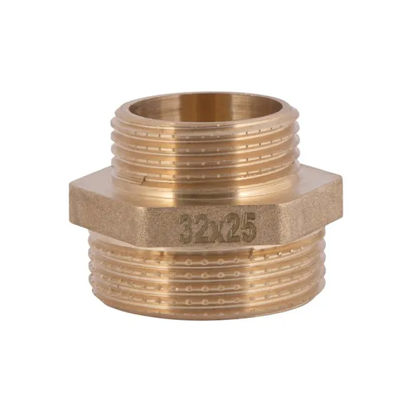 Thermo Alliance Standart Ніпель 1 1/4"х1" НР SD4083225 — це прямий з'єднувальний фітинг, оснащений з обох боків зовнішньою різьбою. Сфера використання — системи опалення, водопостачання, кондиціювання тощо. Таке роз'ємне з'єднання застосовують під час монтажу трубопроводів. Матеріал виготовлення (деталь зроблена з латуні) міцний, стійкий до корозії.