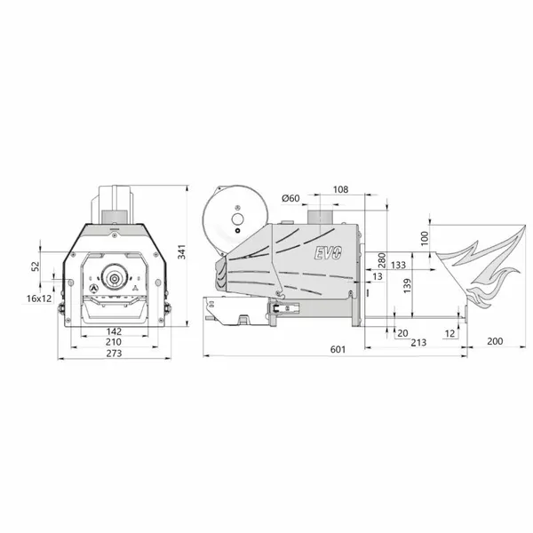 Пелетний пальник EVO 60 у комплекті зі шнеком 1,5 м та контролером Pelet-1 Thermo Alliance