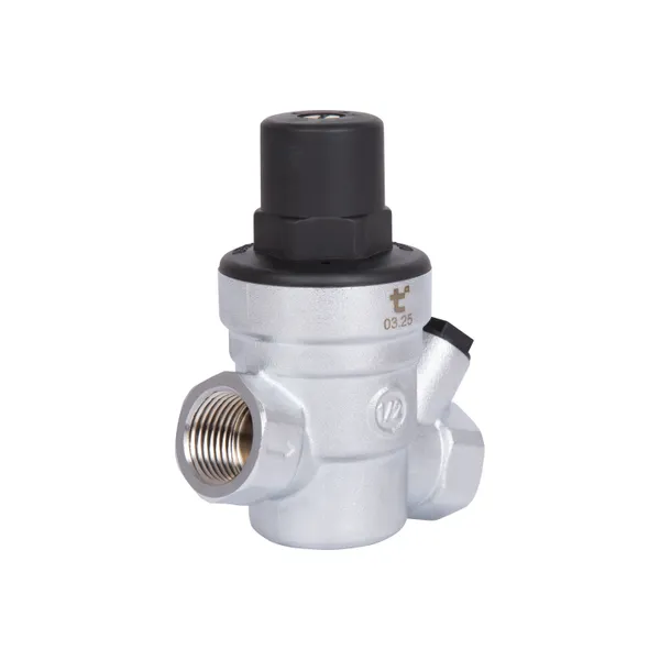 Редуктор Thermo Alliance Standart під манометр 1/2" ВР SD194 — компактний пристрій із герметичним латунним корпусом і двома виходами з внутрішньою різьбою. У системах водопостачання забезпечує стабілізацію та зниження тиску води. Максимальна температура теплоносія — 90 °C, максимальний тиск на вході — 16 бар. Передбачена можливість під’єднання манометра, розмір підключення під манометр — 1/4".