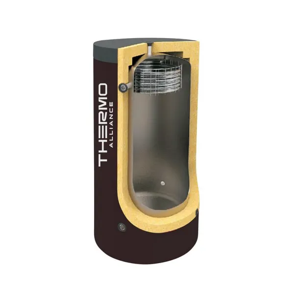 Теплоакумулятор Thermo Alliance TAI-10 350 - це пристрій, призначений для накопичення, збереження та передачі теплоносія від джерел непостійної дії: котли, теплові насоси, геліоколектори та інші. Буферний бак обладнаний верхнім витим теплообмінником з нержавіючої сталі. Основне завдання вбудованого змійовика – нагрівання води для побутових потреб. Теплоакумулятор оптимізує роботу опалювальної системи за рахунок компенсації невідповідності між виробництвом та витратою тепла.