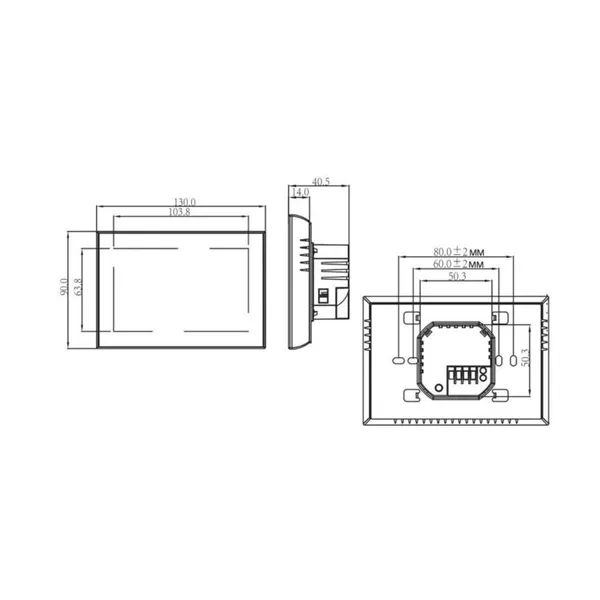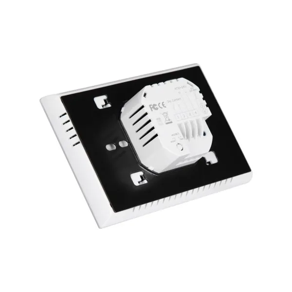 Тижневий термостат із метіостанцією. На дисплеї виводяться отримані з Інтернету показання погодних умов, сила вітру, інтенсивність УФ випромінювання. Великий, 4,8" дисплей з кольоровим зображенням. Товщина над площиною монтажу - всього 15 мм. Монтується в електрокоробку 86х86мм.