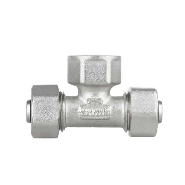 Трійник латунний Standart 16х1/2"Вх16 нікельований для металопласт. труб SD159W161516 Thermo Alliance