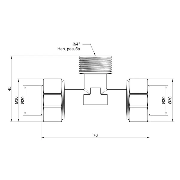 Трійник латунний Standart 20х3/4"Зх20 нікельований для металопласт. труб SD160W202020 Thermo Alliance