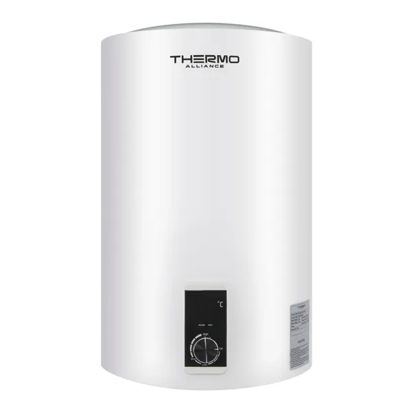 Водонагрівач Thermo Alliance 100 л D100V20J3(D)K — бойлер у круглому корпусі з двома нагрівальними елементами, які не мають прямого контакту з водою. Внутрішню поверхню бака захищають від корозії шар високоякісної емалі та магнієвий анод. Монтаж на стіну слід виконувати вертикально, патрубки для підключення водопровідних труб розташовані внизу. Монтажна схема та рекомендації щодо підключення пристрою до системи водопостачання наведені в інструкції. Товщина внутрішнього бака — 2 мм.