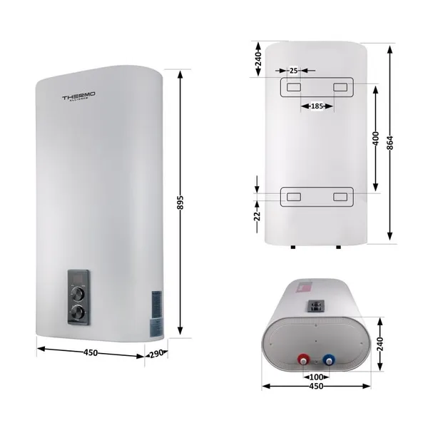 Водонагрівач Thermo Alliance 50 л, сухий ТЕН 2 кВт (0,8+1,2) DT50V20GPDD/2 забезпечить подачу гарячої води для господарсько-побутових потреб. Плоска форма корпусу дозволяє розмістити пристрій там, де простір для монтажу обмежений (наприклад, в неглибокій вертикальної ніші в стіні). На внутрішню поверхню бака нанесено високоякісне емальоване покриття. Бойлер обладнаний зручною панеллю керування з дисплеєм, швидко нагріває і підтримує необхідну температуру води. Товщина внутрішнього бака - 2 мм.